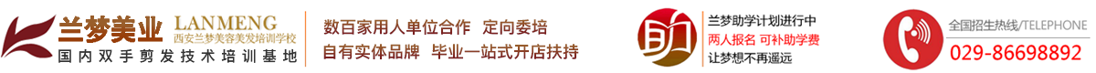 西安市莲湖区兰梦美容美发职业培训学校成立于1993年,总校座落于十三朝古都陕西省西安市。 建校以来,国际兰梦一直秉承严谨治学,以德育人的办学理念,在古都西安浓郁的传统民族文化氛围和强烈的国际艺术氛围中逐步成长。30年来,经过市场经济的大浪淘沙,经过各种风险的残酷考验,兰梦美容美发学校已经成长为一所规模化、专业化的美容美发学校。